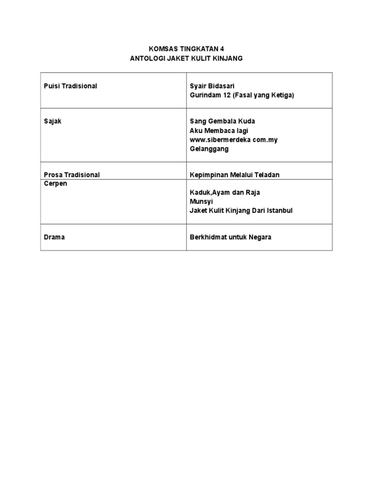 Senarai Komsas Tingkatan 4 Pdf