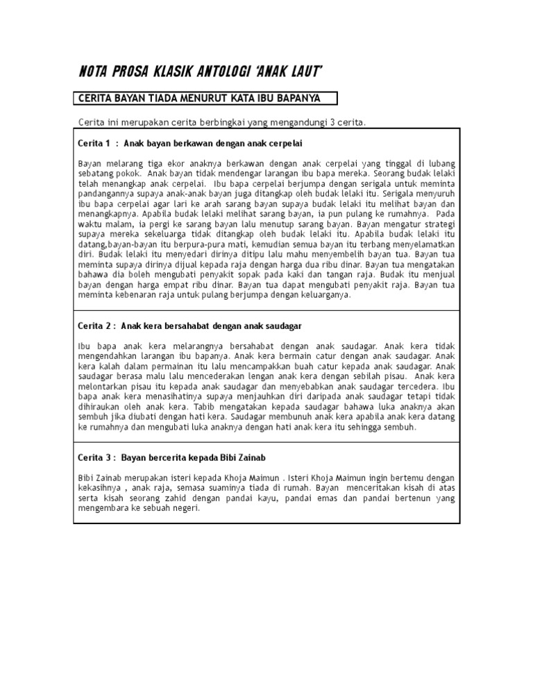 Prosa Tradisional Doc Tingkatan 4 Pdf